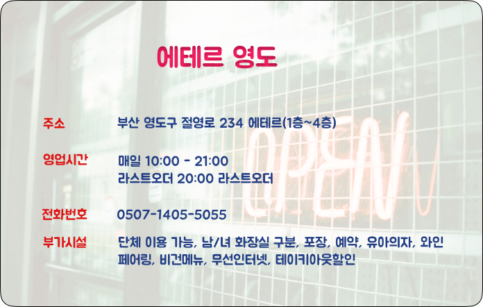 에테르영도 메뉴판