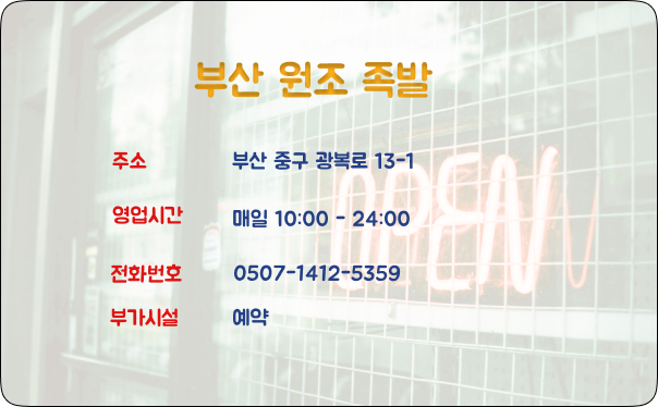 여기 부산 원조 족발은 부산 현지인부터 관광객까지 모두 인정하는 진짜 '원조 족발집'이라는 점이죠.