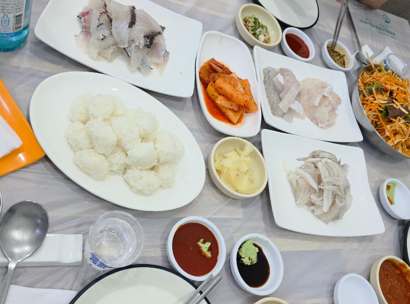 회는 신선하고 쫄깃한 식감이 일품이었으며, 접시밥과의 조합도 훌륭했어요.