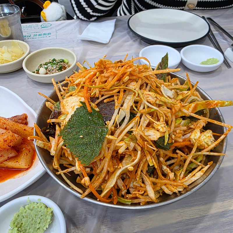 반찬으로 제공된 양배추 초고추장 무침이 생각보다 너무 맛있었어요.