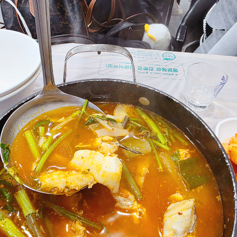 회를 먹고 나서 거의 포만감이 있었지만, 매운탕 한 입 먹자마자 다시 젓가락을 들 수밖에 없었어요.