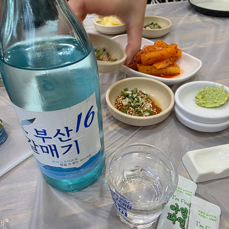 부산에 왔으니 부산갈매기 소주를 한 번 마셔보기로 했어요.