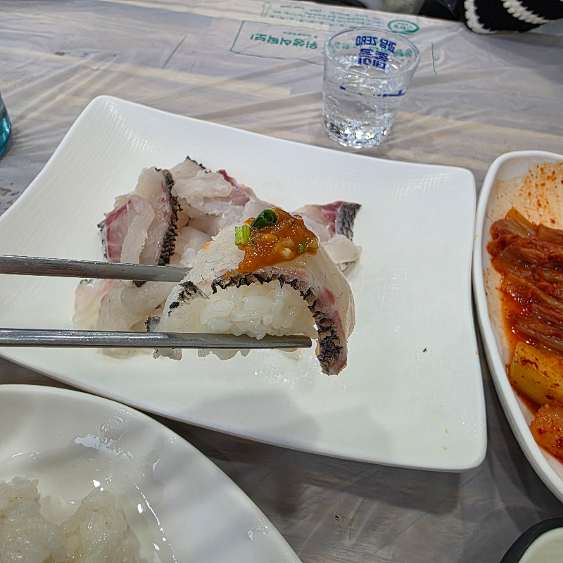 회를 먹다가 중간중간에 이걸 곁들이면 느끼함 없이 깔끔하게 넘어가게 해주는 역할을 했어요.