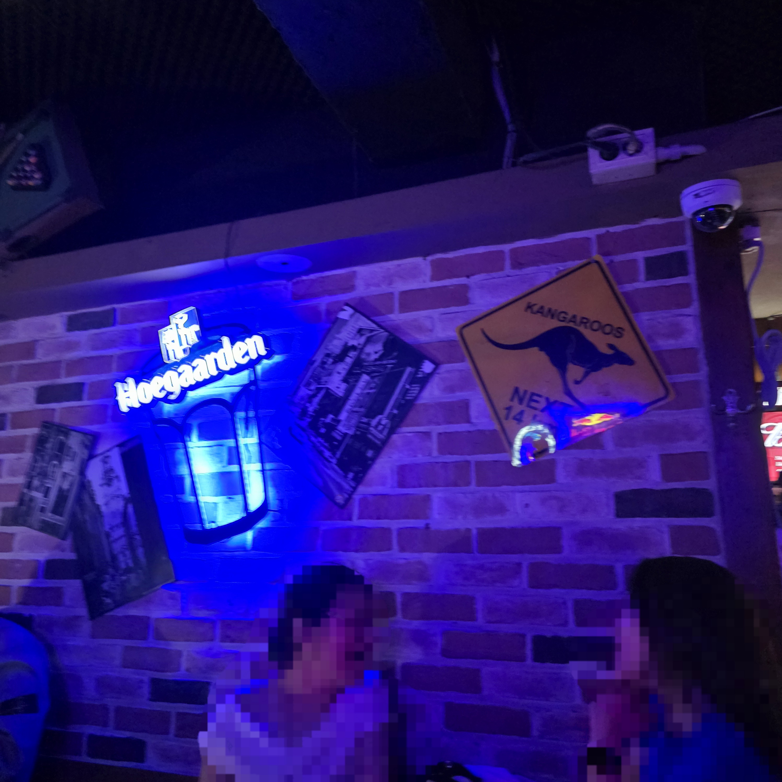 바의 외관은 나무로 되어 있어 아늑한 느낌을 주고, 내부는 다양한 네온사인으로 장식되어 있어요.