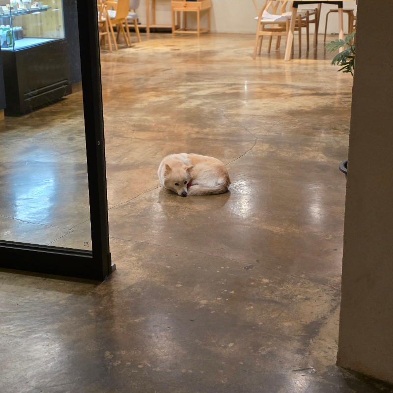 그리고 진짜 빠질 수 없는 포인트! 강아지 두 마리가 입구 근처에서 주인을 기다리듯 앉아 있는데,