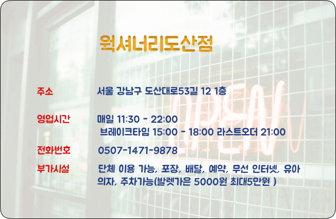 도산공원 퓨전 중국집 웍셔너리 매장정보 및 추천 메뉴