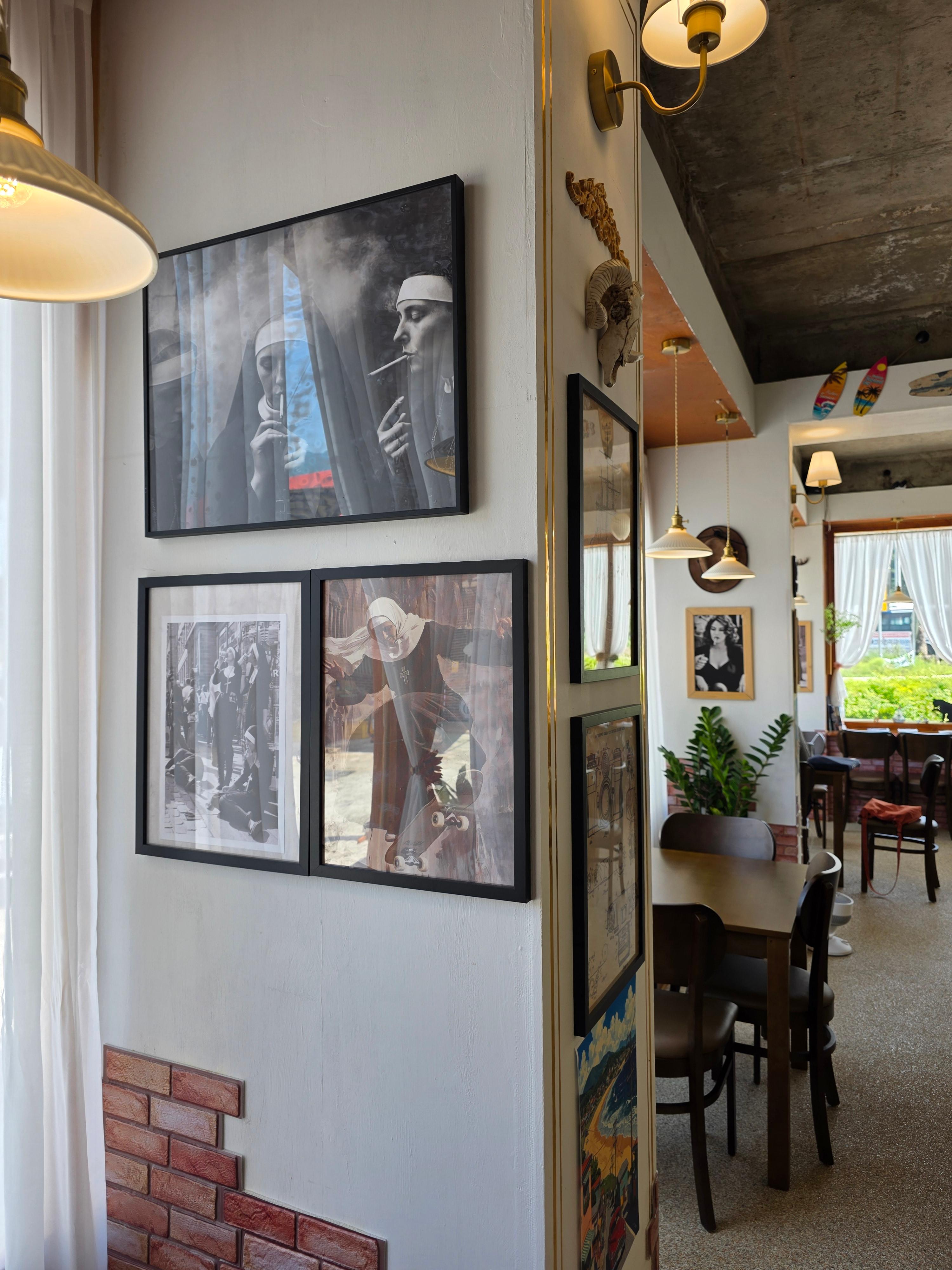 테이블은 총 다섯 개, 바 테이블 하나가 준비되어 있고, 벽면 곳곳에는 사장님이 직접 찍으셨다는 필름사진과 빈티지 카메라,
