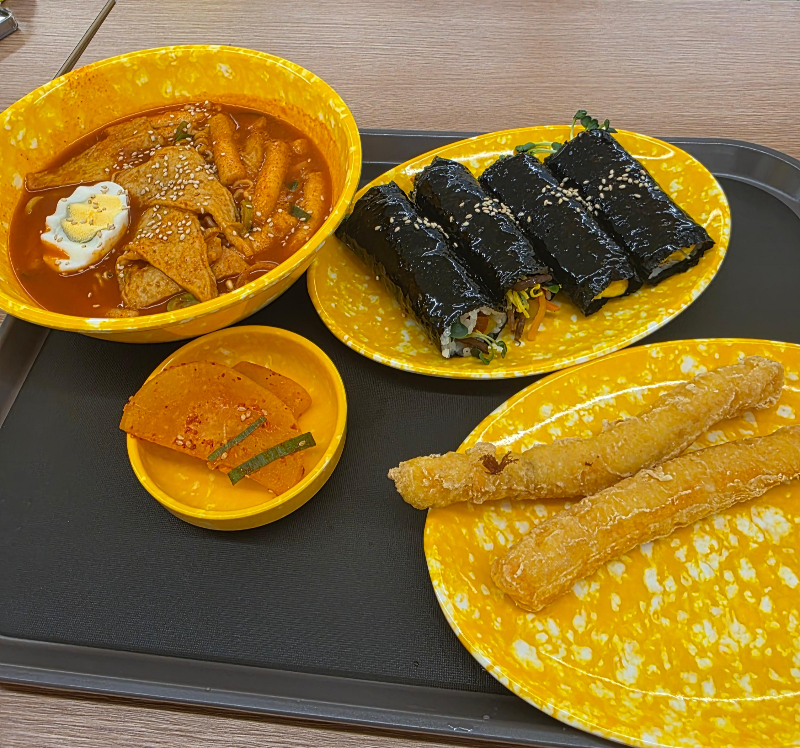무엇보다 매장 전체가 깔끔하게 관리되고 있었고, 테이블 간 거리도 여유 있어 혼밥하기에도 부담 없었어요. 병아리 인형 옆에서 먹는 김밥이라니… 혼밥도 기분 좋아지는 곳이랄까요