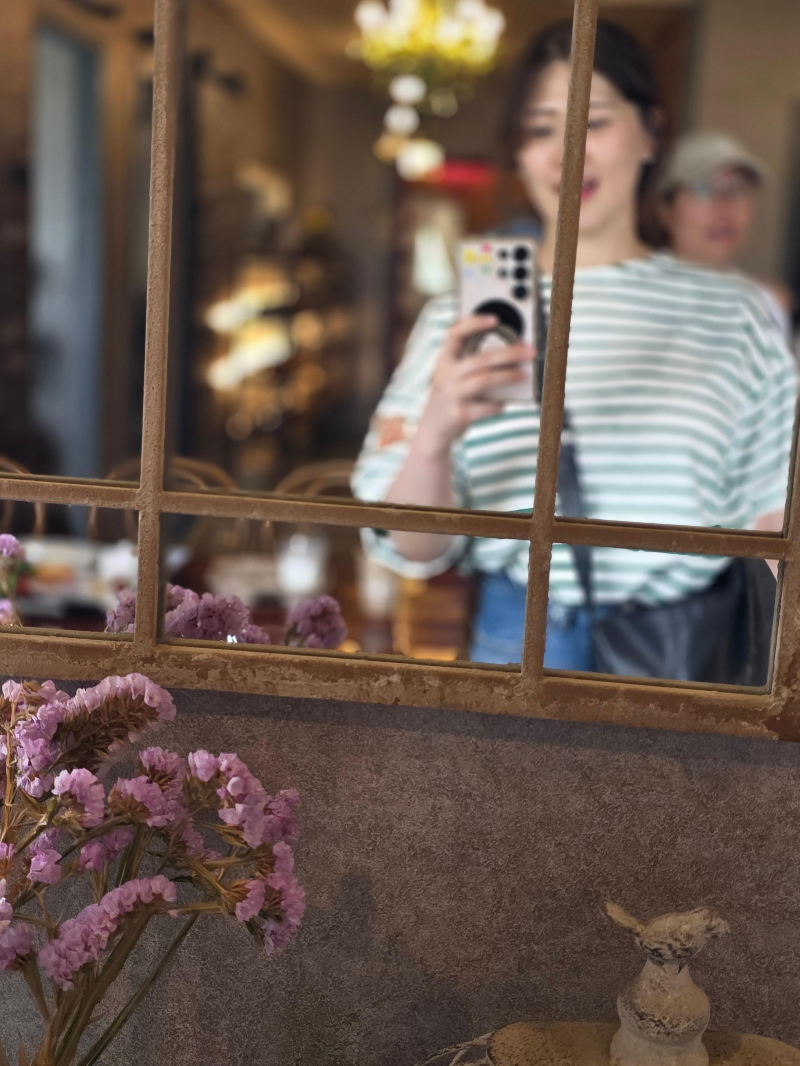 그리고 거울을 지나칠수없는 저도 사진을 찍게 되는 여기는 카페안이예요. 다시 옷갈아입고 싶구나~ ㅎㅎ