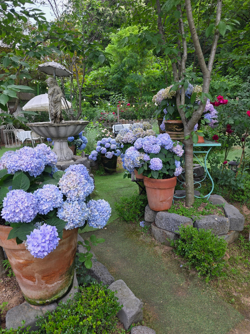 수국 정원이나 나무 숲길, 테이블 주변 포토존이 너무 예뻐서 정말 인생샷 찍기 딱 좋았어요.