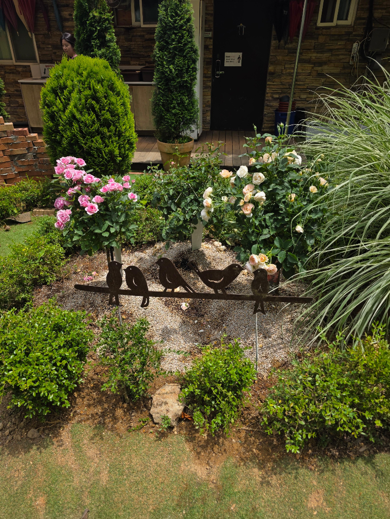 처음 도착했을 때 가장 먼저 눈에 들어온 건 넓은 야외 정원이었어요.