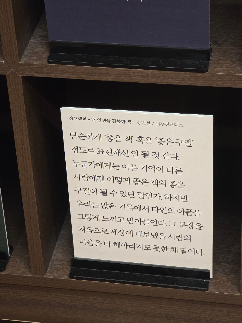 책방이라는 공간은 참 이상해요. 말 없이 걸어도 마음이 차분히 정리되는 느낌이 들잖아요.