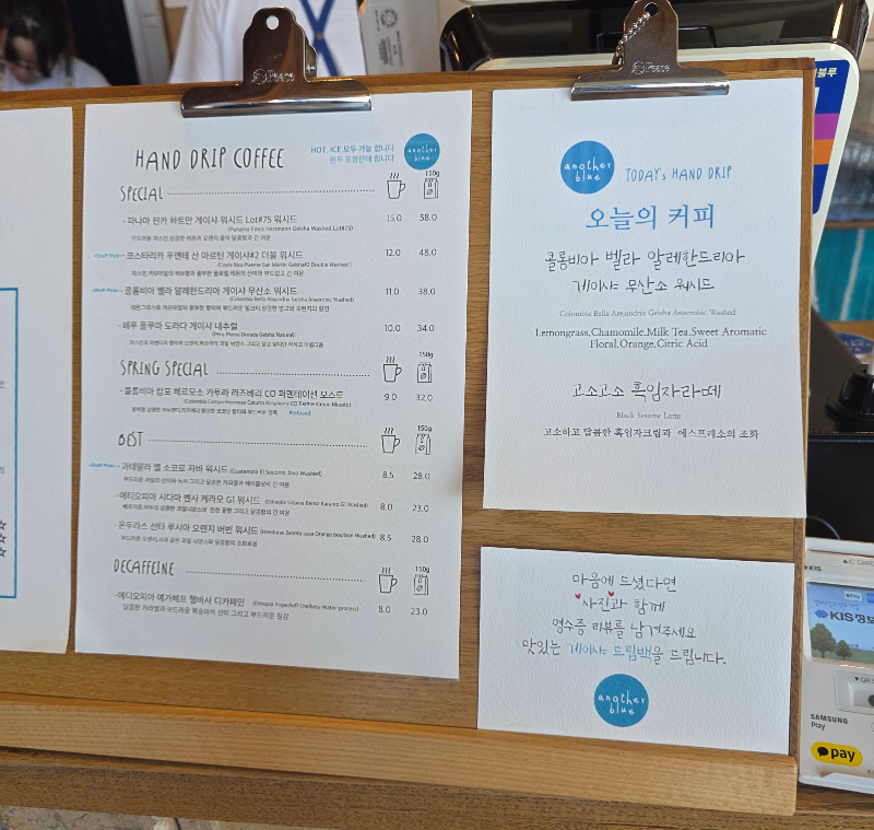 어나더블루 메뉴판 소개