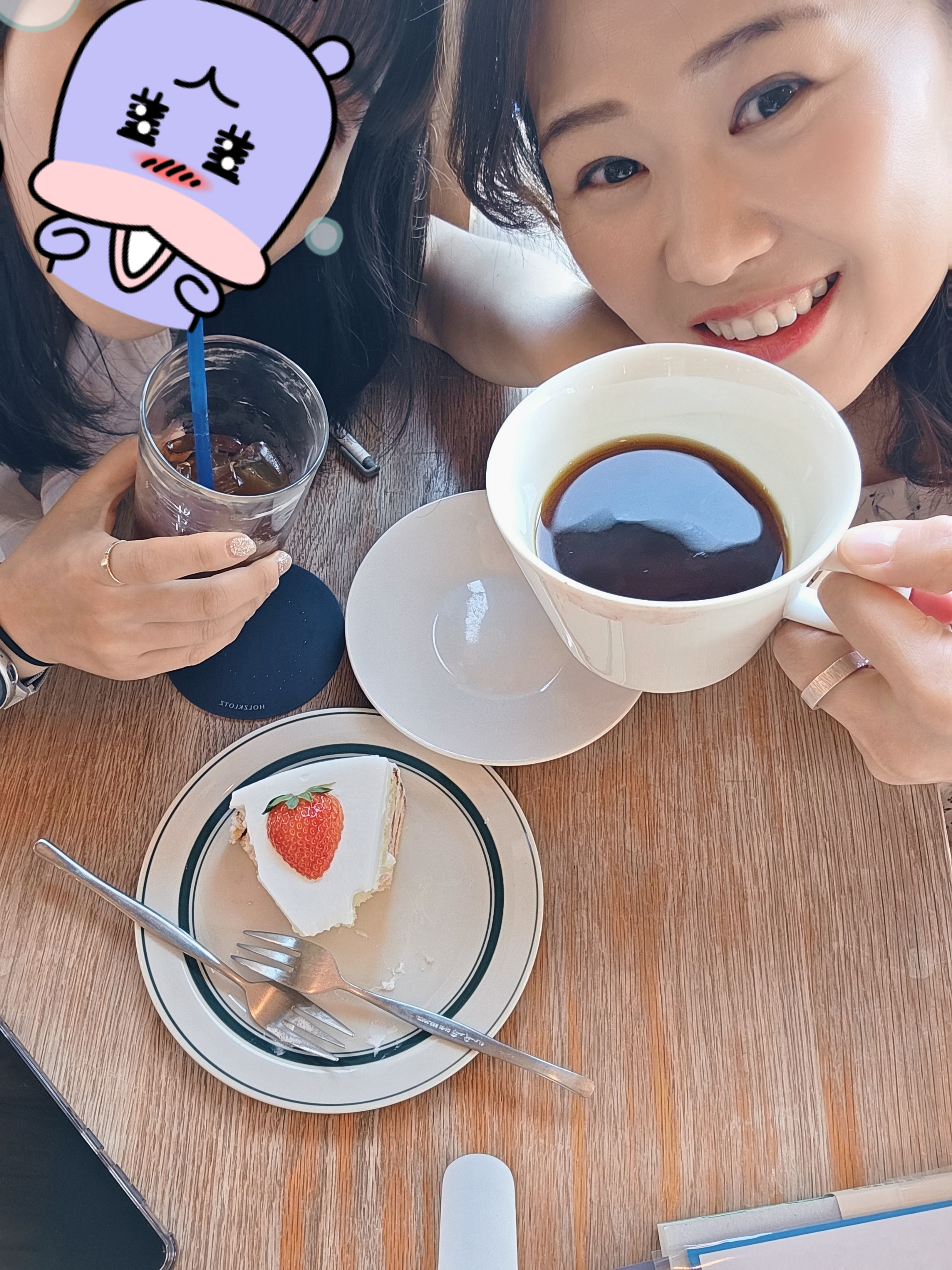 드립커피의 향긋함과 딸기 케이크의 산뜻한 단맛이 서로 경쟁하지 않고, 부드럽게 어우러지는 느낌이랄까요?