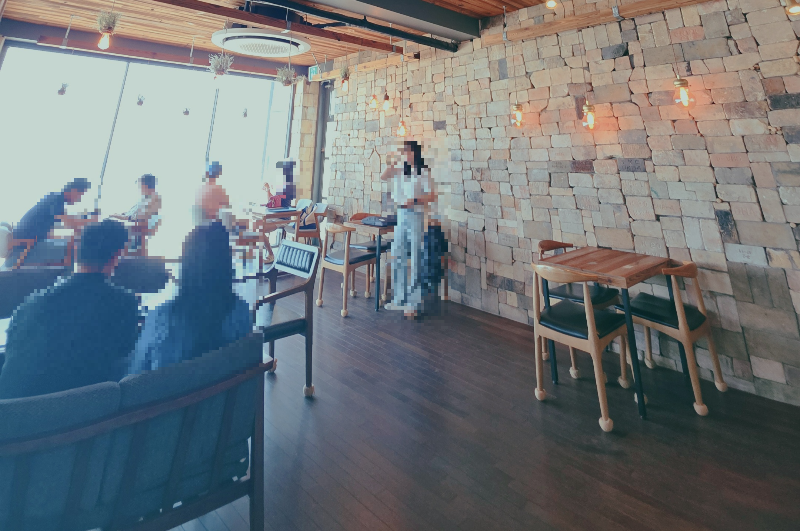 2층은 메인 공간인데요, 전면 유리창으로 시야를 확 트이게 해두어서 어느 자리에 앉든 바다를 볼 수 있어요.