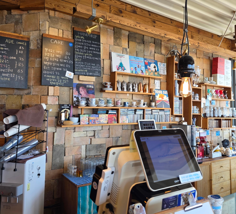 1층은 주문과 픽업이 이루어지는 공간으로, 바리스타가 직접 핸드드립을 준비하시는 모습도 볼 수 있어서 흥미로웠어요. 커피 향이 퍼지는 공간이라 들어서는 순간부터 기분이 좋아져요.