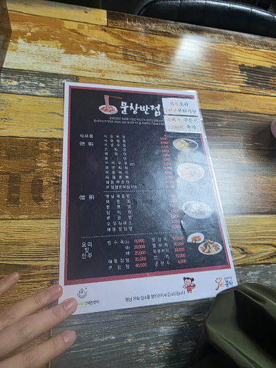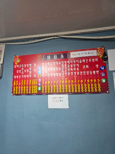 문창반점 메뉴판