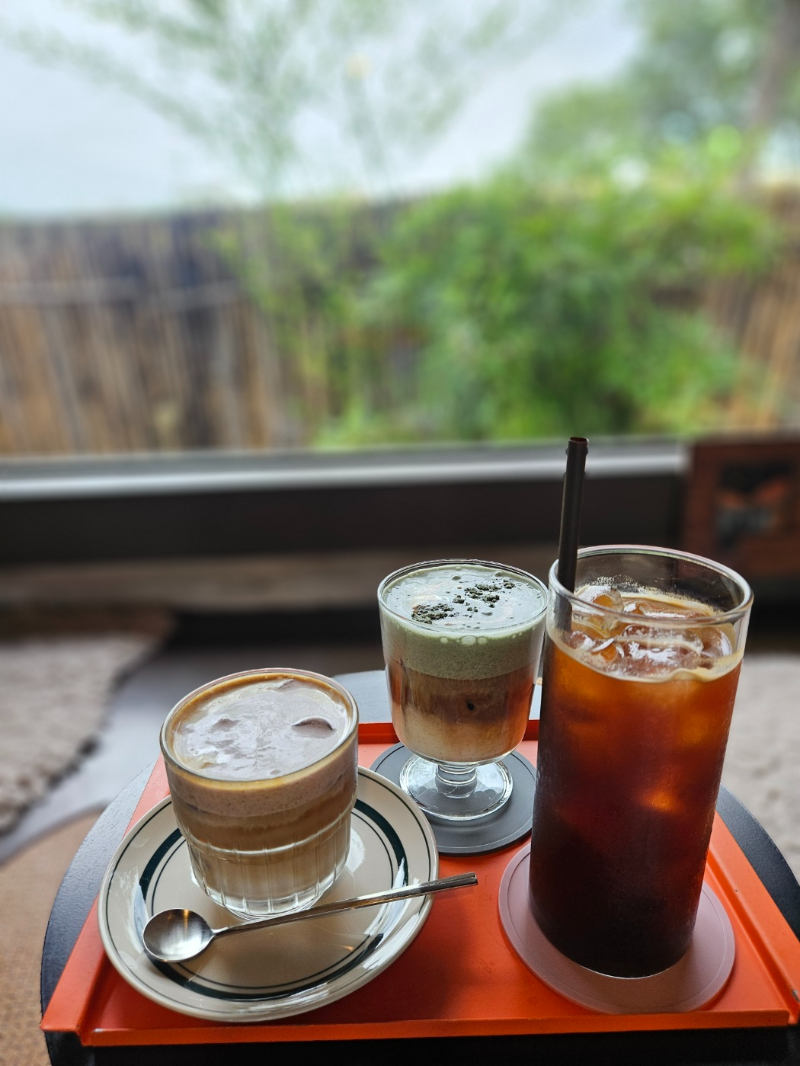 우리가 방문했던 날은 비가 부슬부슬 내리는 날이었는데, 창밖을 바라보며 커피를 마시기에 더 감성적인 풍경이 펼쳐지더라구요.
