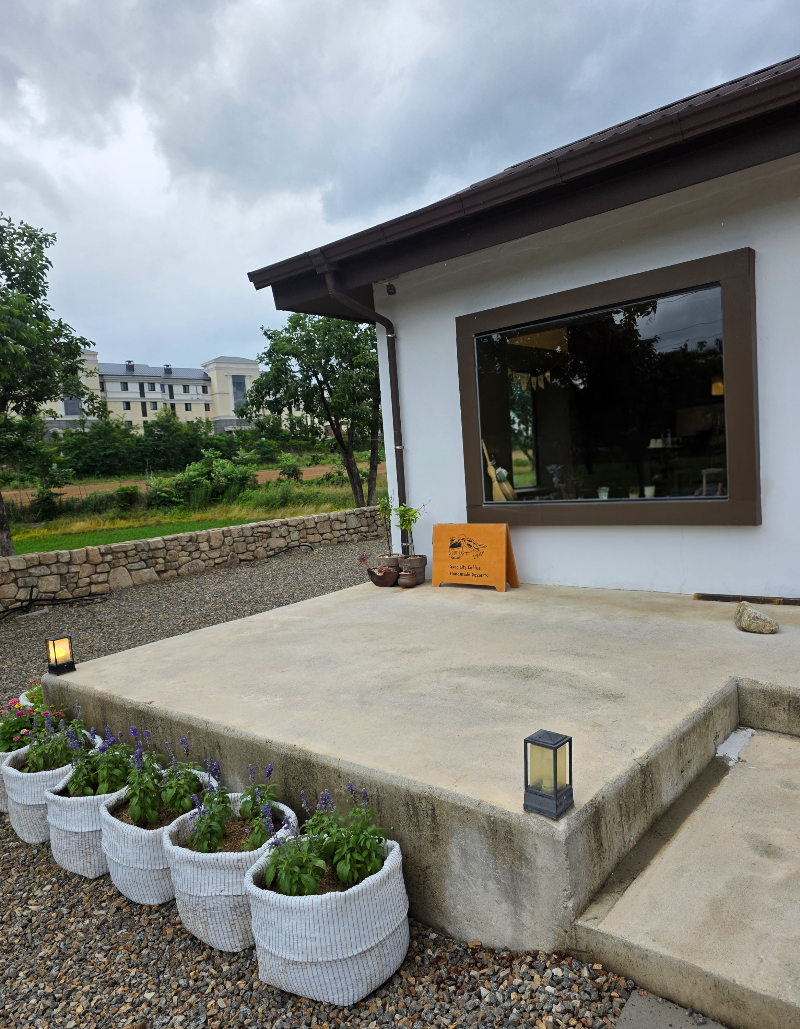 창문으로 보이는 바깥 풍경도 참 인상 깊었어요. 푸른 정원 사이사이로 저 멀리 보이던 샤스타데이지꽃들이 뭔가 묘한 여운을 남기더라구요. 꽃은 많이 지긴 했지만, 그 흔적만으로도 충분히 아름다웠어요. 그리고 실내에 흐르던 잔잔한 음악까지. ‘여기 진짜 제대로 쉬러 온 느낌이다’ 싶었답니다.