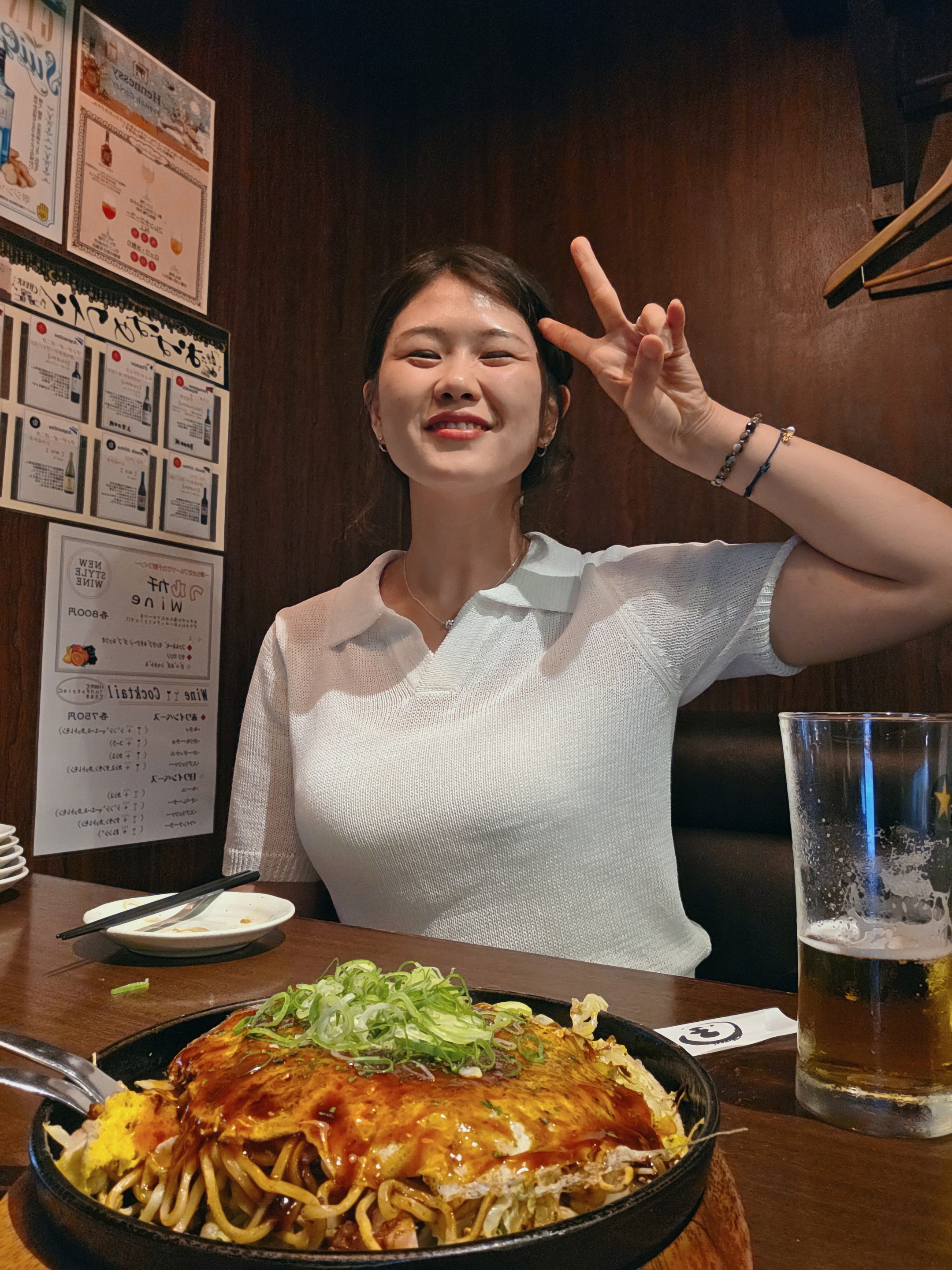 오코노미야키 한 입, 맥주 한 잔.