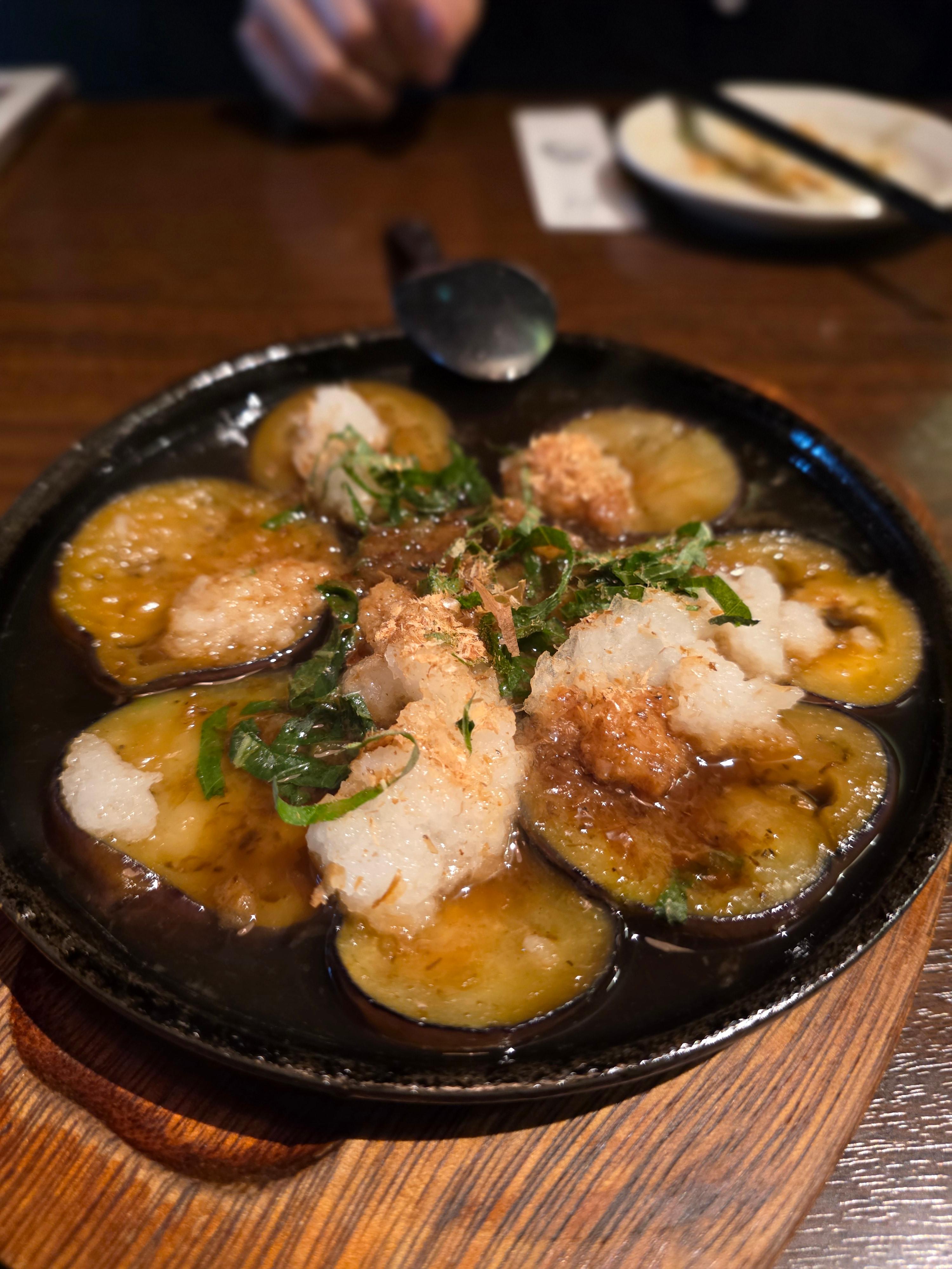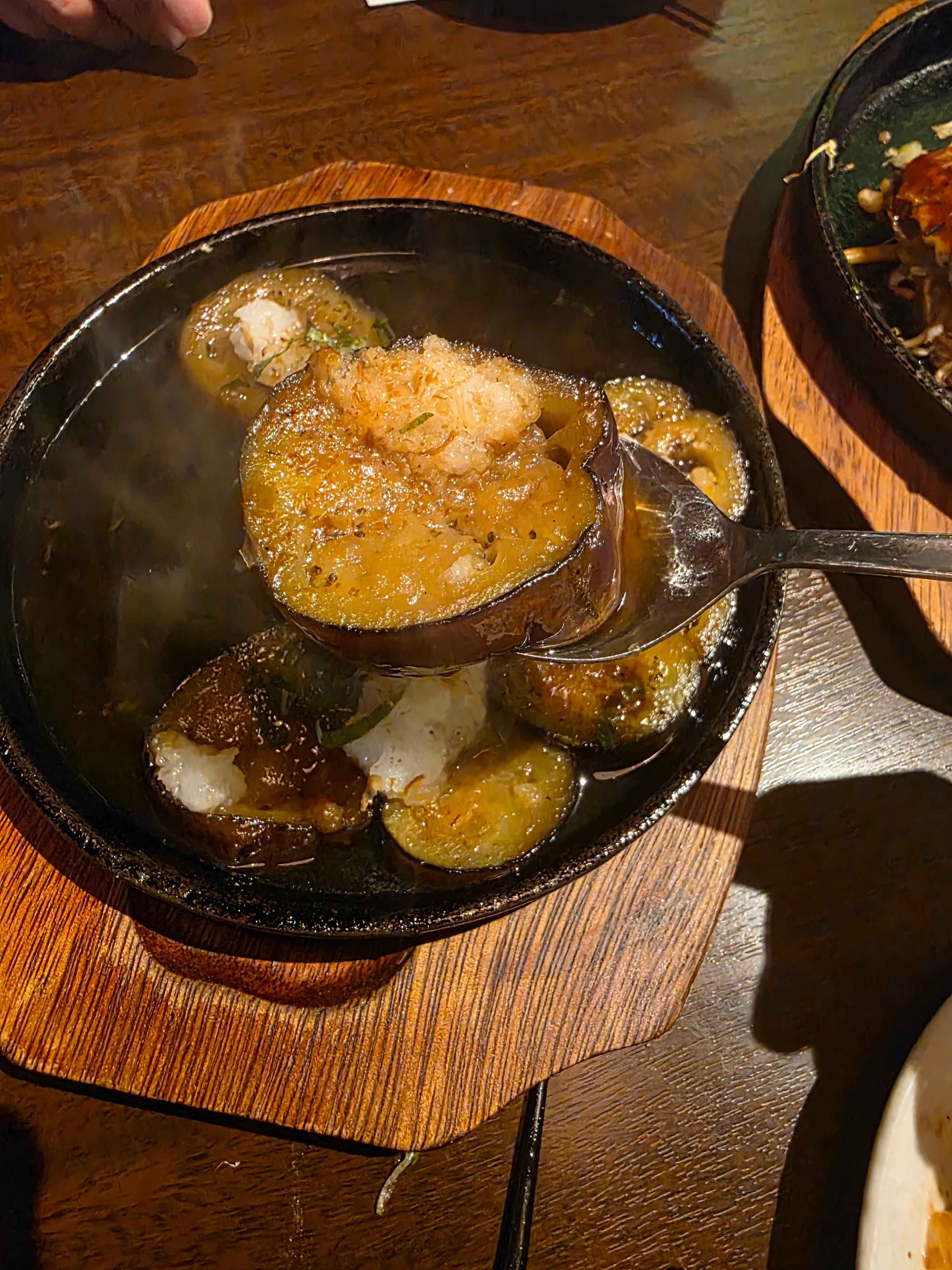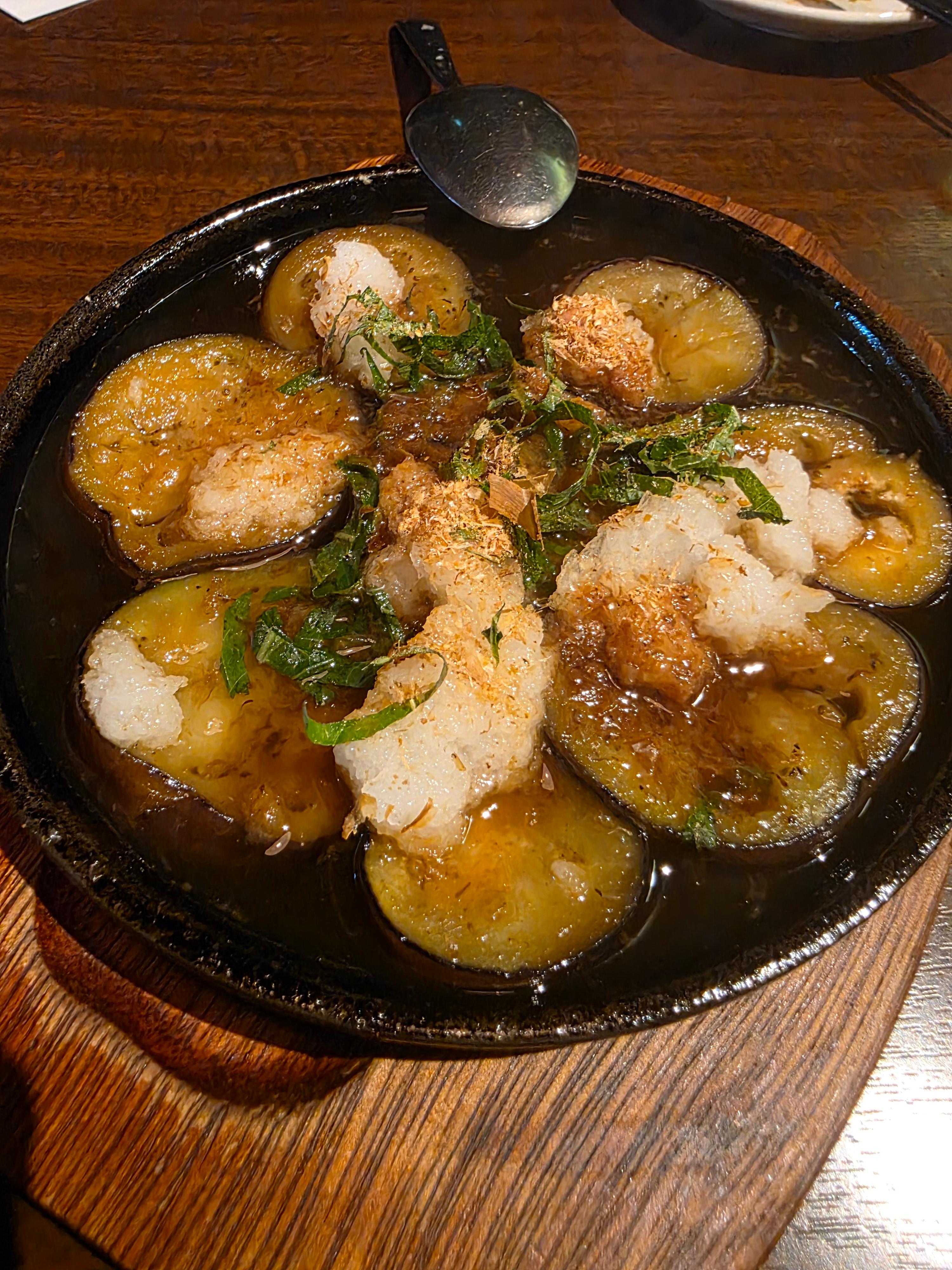 이곳의 가지튀김은 따끈한 국물 속에 담겨 있는 독특한 스타일이었어요.
