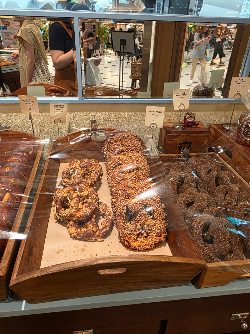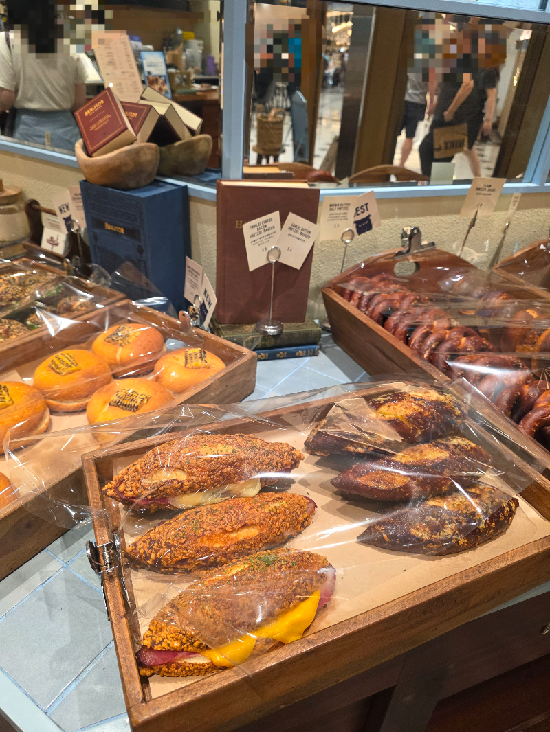 매장은 신세계백화점 지하 1층 푸드코트 ‘스위트파크’ 한켠에 자리잡고 있어요. 인테리어는 깔끔하고 고급진 느낌이 들고, 진열대에 예쁘게 놓여 있는 프레첼과 베이글들이 눈을 사로잡더라고요. 매장 자체가 엄청 크진 않지만, 제품의 퀄리티와 디테일에서는 장인정신이 느껴지는 그런 분위기였어요.