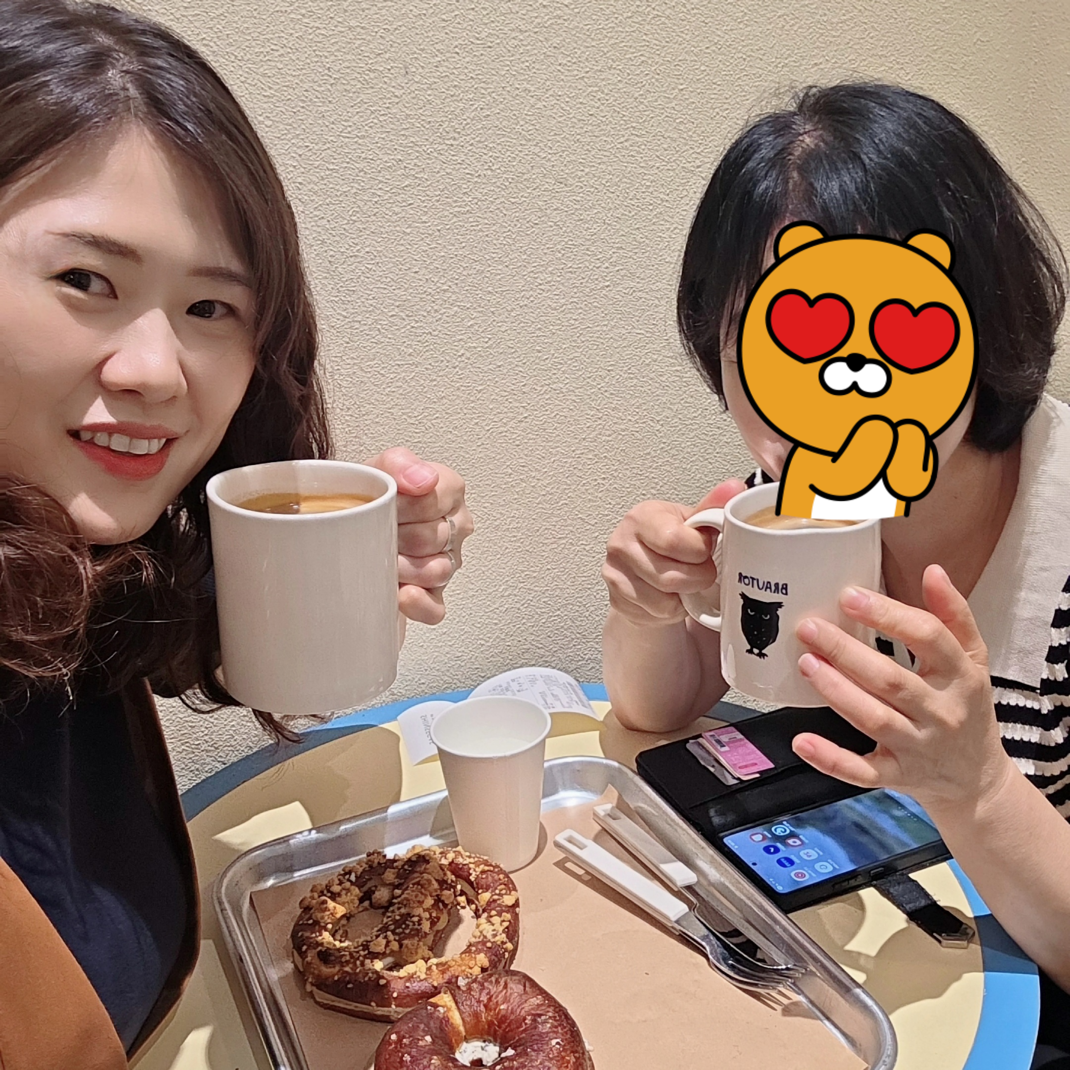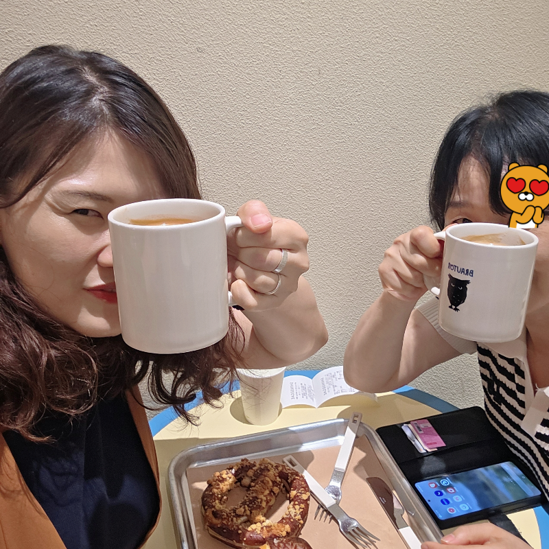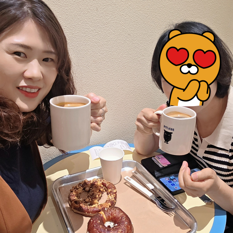 오랜만에 엄마랑 둘이 조용히 앉아 여유롭게 빵 하나, 커피 한 잔 나누며