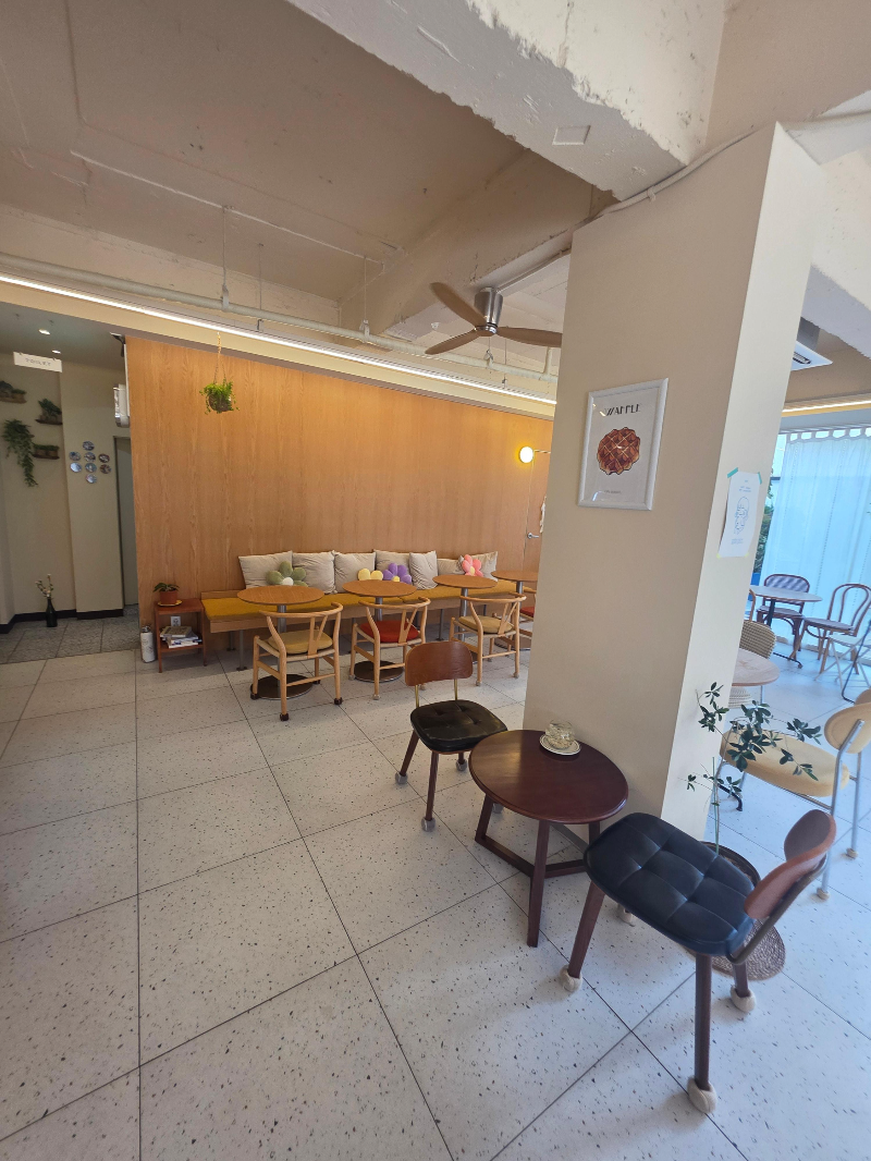 - 디저트: 플레인 와플, 누텔라 와플, 크림치즈 와플
